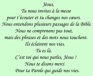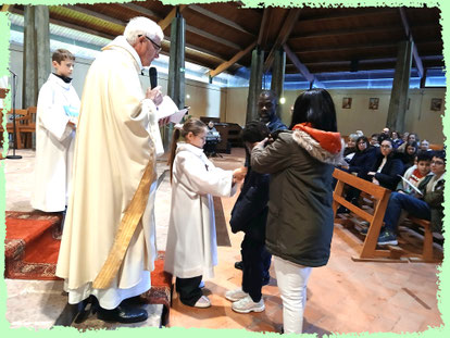 Un livre "l'EVANGILE pour les Enfants" lui a été remis au cours de la Célébration des Familles, elle découvrira les trésors de cette