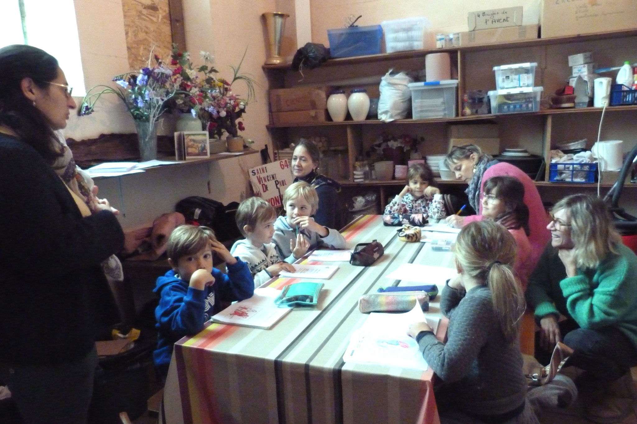 Puis vient le moment où ils écoutent une jolie page de la Bible, contée par leur animatrice ou projetée par vidéo. Chaque rencontre à un thème précis selon la liturgie du moment. Toussaint, Noël, Pâques, au mois de mai c’est Marie qui est à l’honneur.