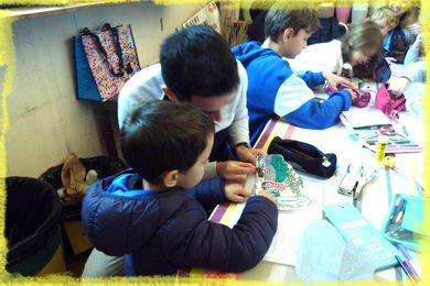 Les accompagnatrices (-teurs) des relais ne manquent pas d’imagination pour capter l’attention des enfants, et ça marche ! Prières, chants, coloriage…