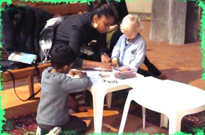 Les accompagnatrices (-teurs) des relais ne manquent pas d’imagination pour capter l’attention des enfants, et ça marche ! Prières, chants, coloriage…